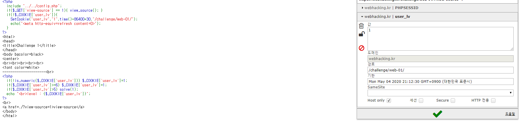 editthiscookie를 사용하여 쿠키를 얻었더니 1이라는 값을 얻었다.